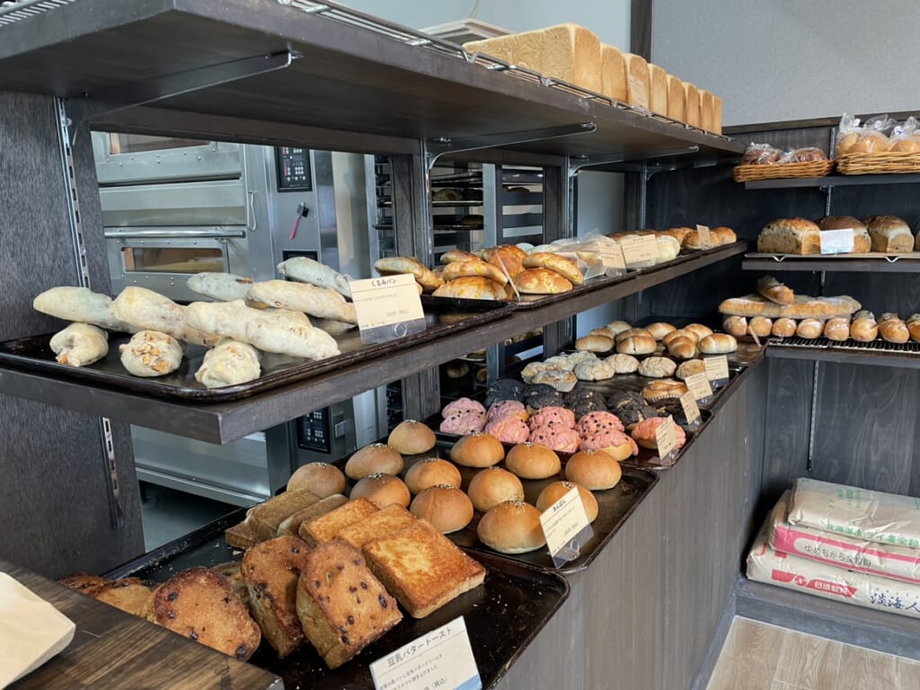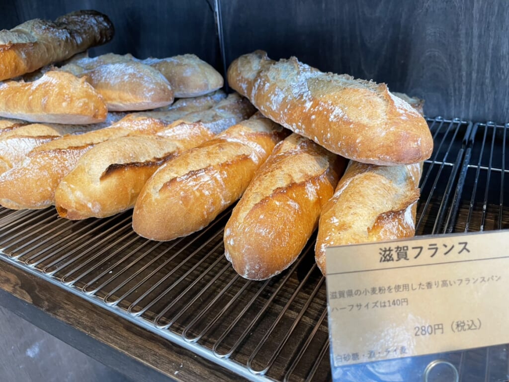 とりあえず少し走って離れたコインパーキングに停めてお店に向かいました。店内には美味しそうなパンが丁寧に並んでいて、続けて焼きたても出てきます。地元滋賀県産小麦のバゲットなどウリの商品もあって魅力的なお店だな、と思いました。ただ次来る時も駐車場に困るなぁ、と思っていたところ!立看板に無料駐車場の情報が書いてありました^o^ なるほど!道路からは見えなかったけど、こんな近くに駐車場があったんだ。しかも無料は嬉しい!