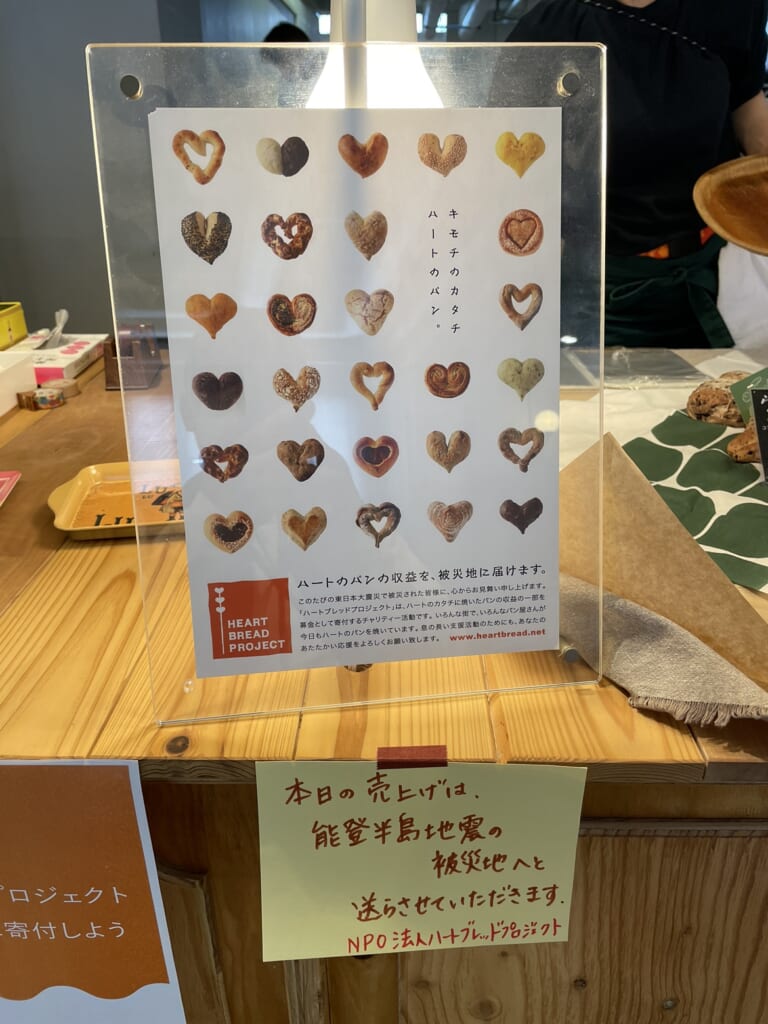 これはKIITOに入居するクリエイティブな仕事に関わる人たちの活動を一般に紹介するイベントです。その会場内において、私がお手伝いさせて頂いている、認定NPO法人ハートブレッドプロジェクト(HBP)に所属する会員ベーカリーのパンを販売し、その売上代金を「能登半島地震」の被災地に届けさせて頂くことにしました。