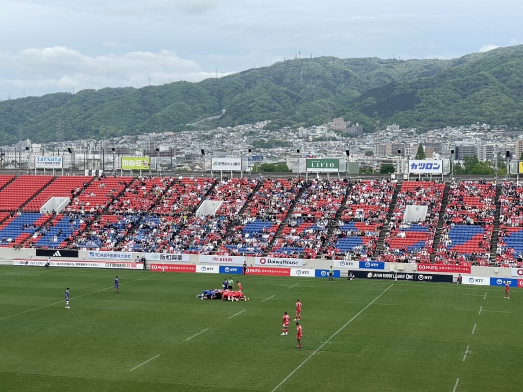 野球派の私にとってラグビー観戦は初体験!身体と身体がぶつかり合う音はすごい迫力でした。今回、スポンサー企業のイスズベーカリーさんからチケットを頂いたので、いい席で観戦することができました。