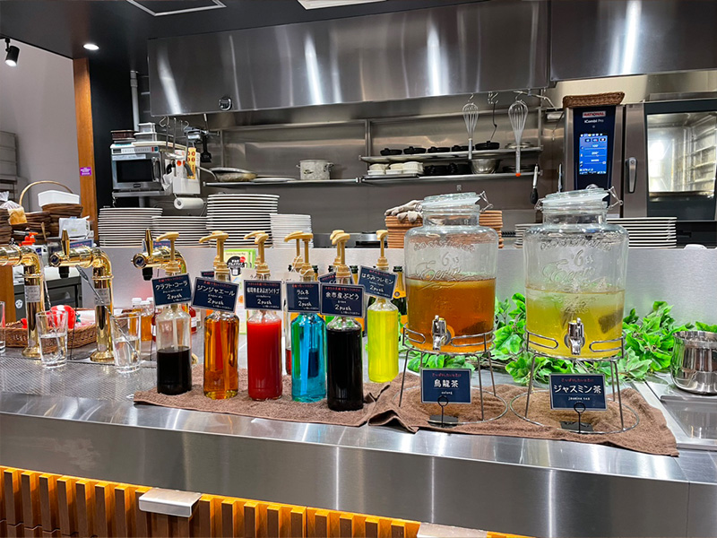 カラフルなシロップがズラリと並び、サーバーの炭酸水で割るとオリジナルのドリンクが出来上がります。