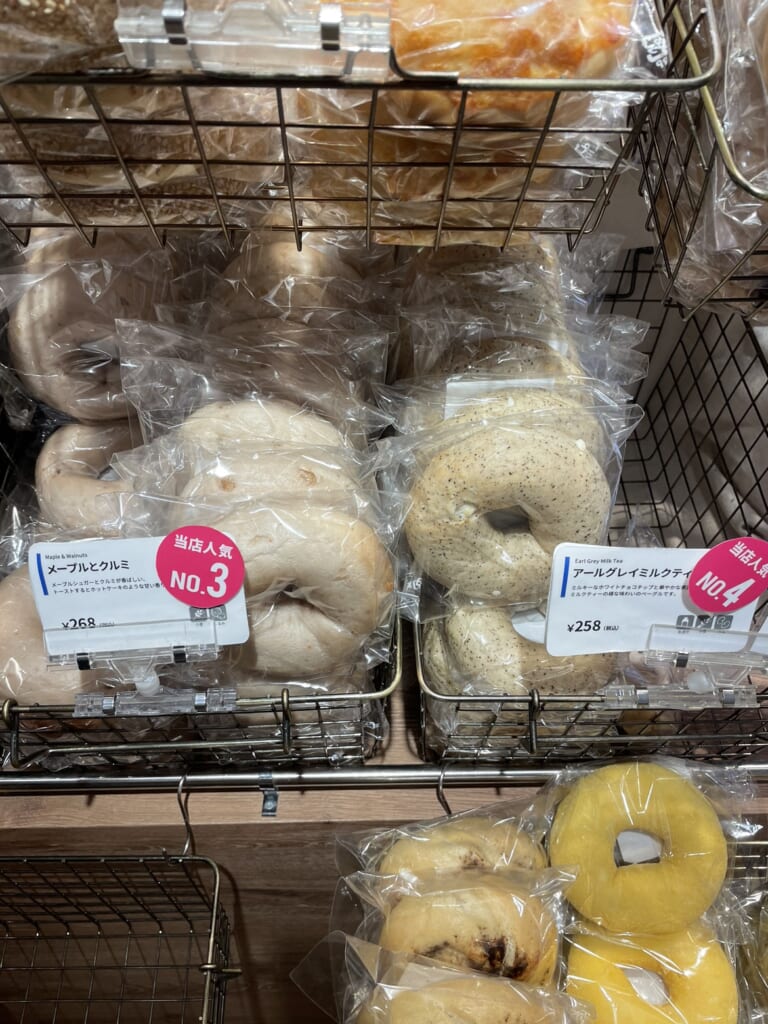 ③パンよりも若干日持ちがするので、前日残ったベーグルを朝一に出せることで開店時の棚を埋められる。