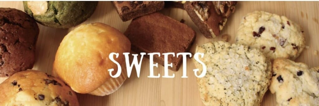 また、ベーグル以外に「CREAM CHEESE」「HUMMUS」など食材やマフィンなどの「SWEETS」も揃っていて、お店も華やかですね。