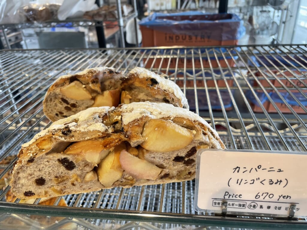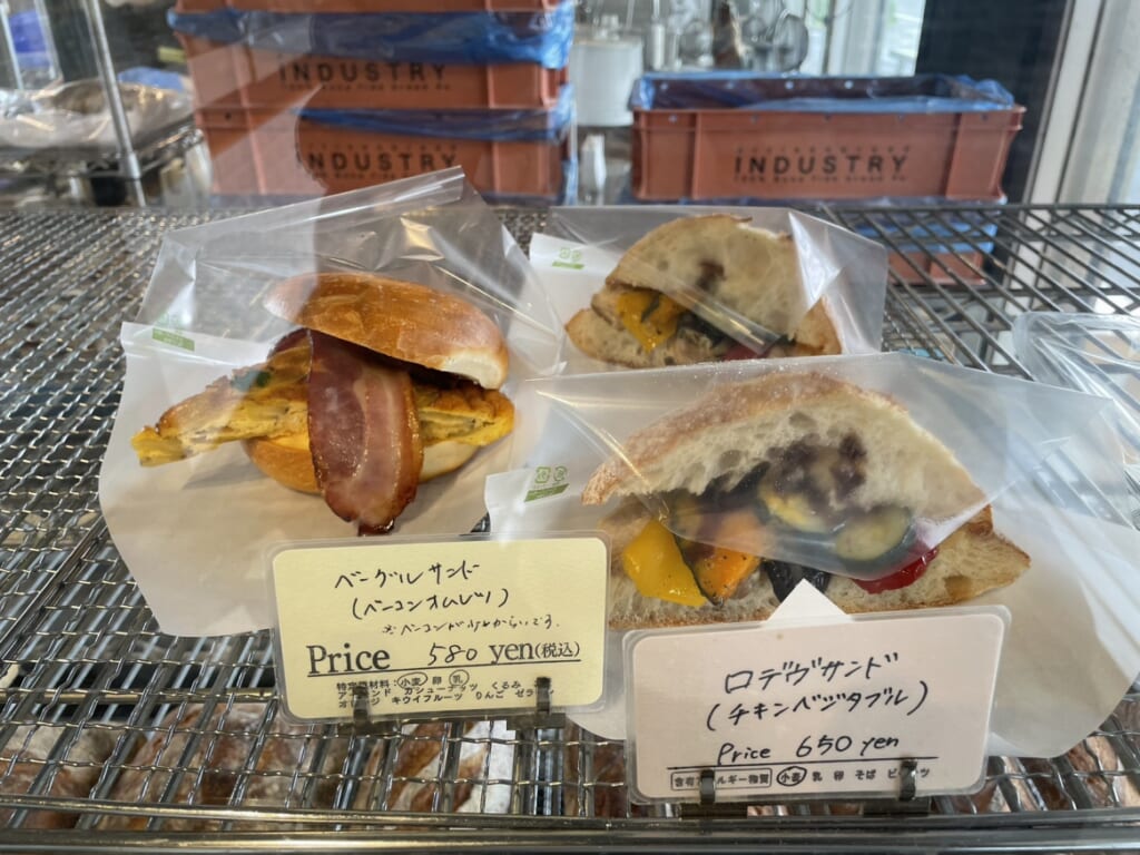 商品はお店の雰囲気通り、ハード系のパンが主流で、あんバターフィセルサンドやロデヴではさんだサンドなどが人気です。またリンゴやクルミがゴロゴロ入ったカンパーニュは驚きでした。そして定番のクロワッサン、クリームパン、ベーコンエピ等々、購買意欲が止まらなかったです。