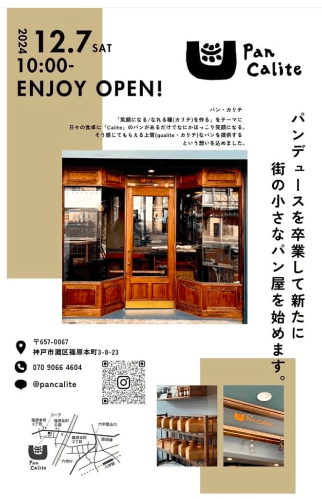 ベーカリー「Pan Calite(パン・カリテ)」(神戸市灘区篠原本町3)です。