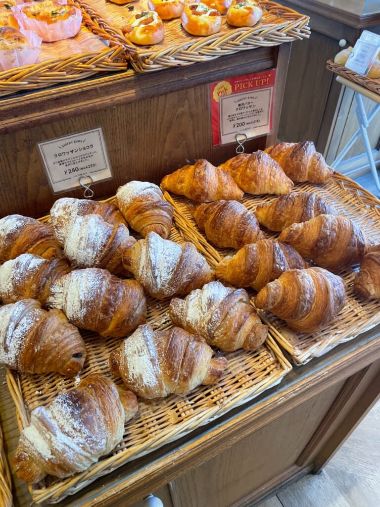 フルーツがデコレーションされたデニッシュは、さすがにプラスチックケースに入れてくれますし、まだ熱々のパンは袋を閉じずに渡してくれます。柔らかなクリームパンやサクサクのクロワッサンは、この方法で持って帰っても型崩れしていなかったので嬉しかったです。