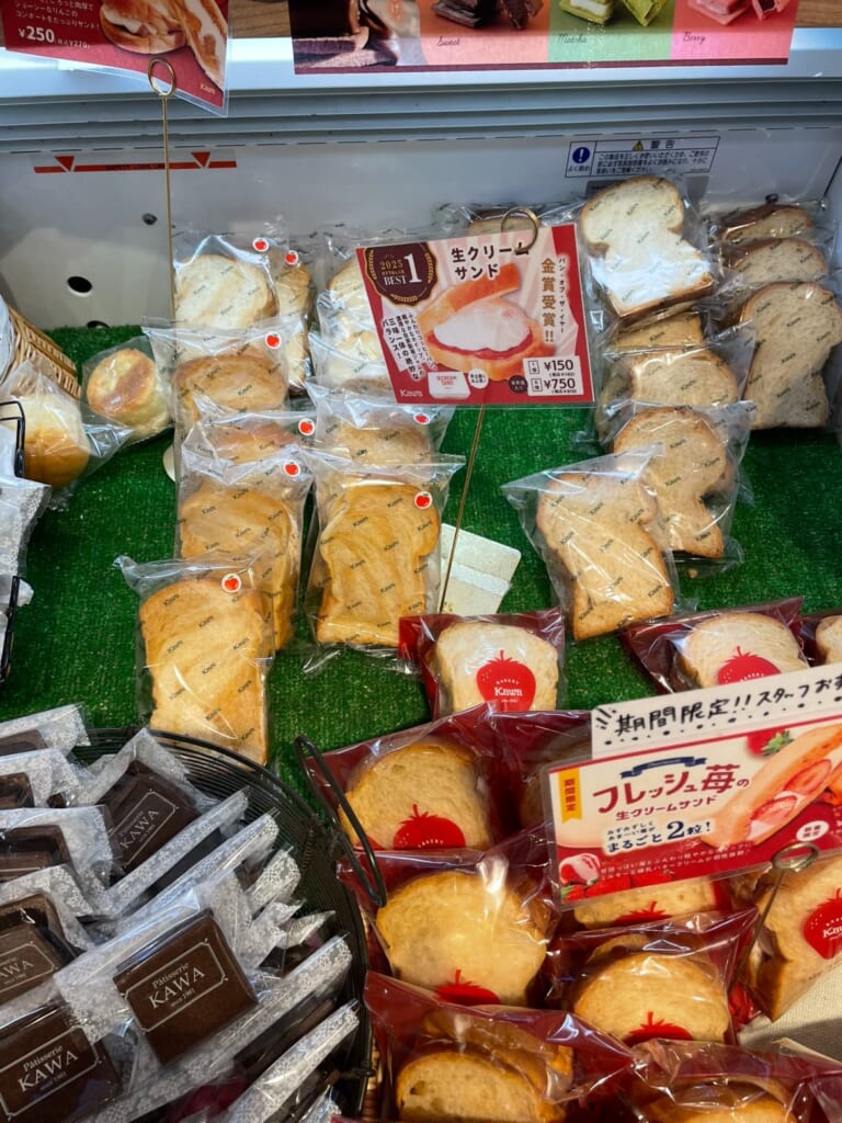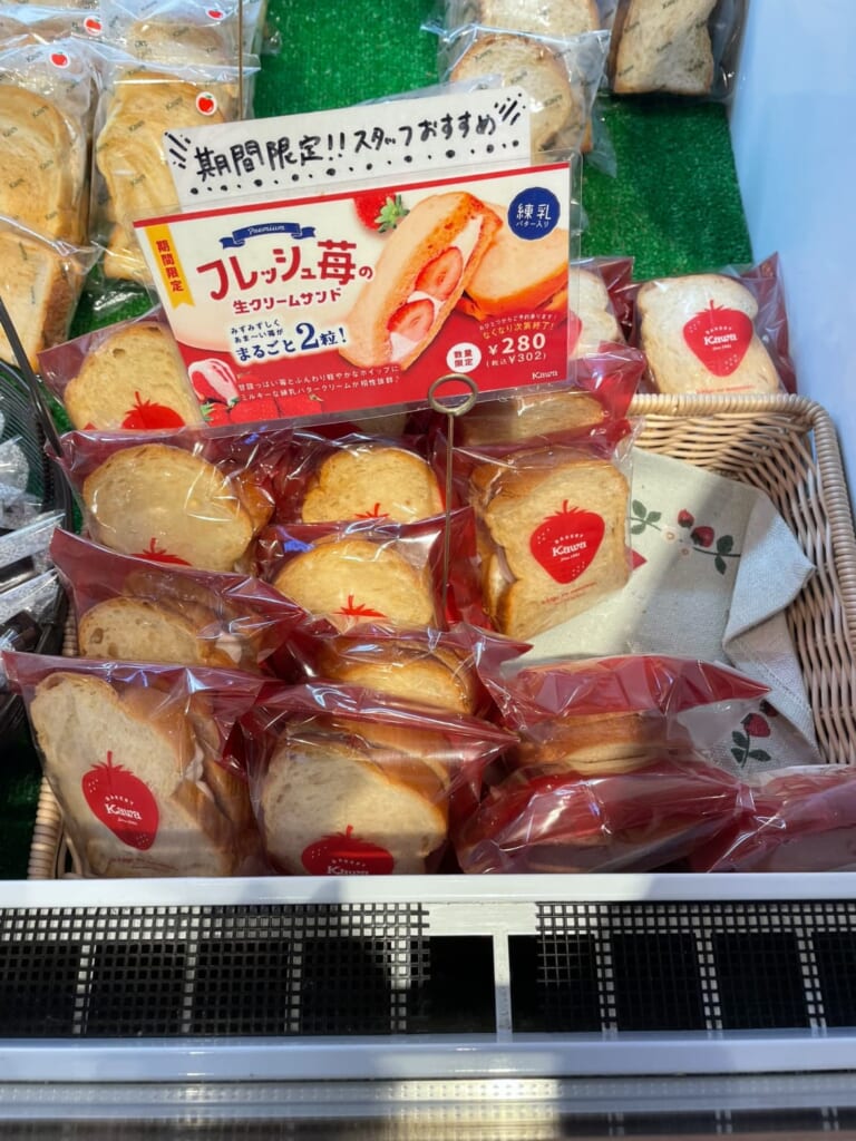 1日10,000個売れ続けている人気No.1商品です。また季節の食材をサンドしたバリエーションも人気で、ちなみに1月は「フレッシュ苺の生クリームサンド」が販売されています。150円(税抜)