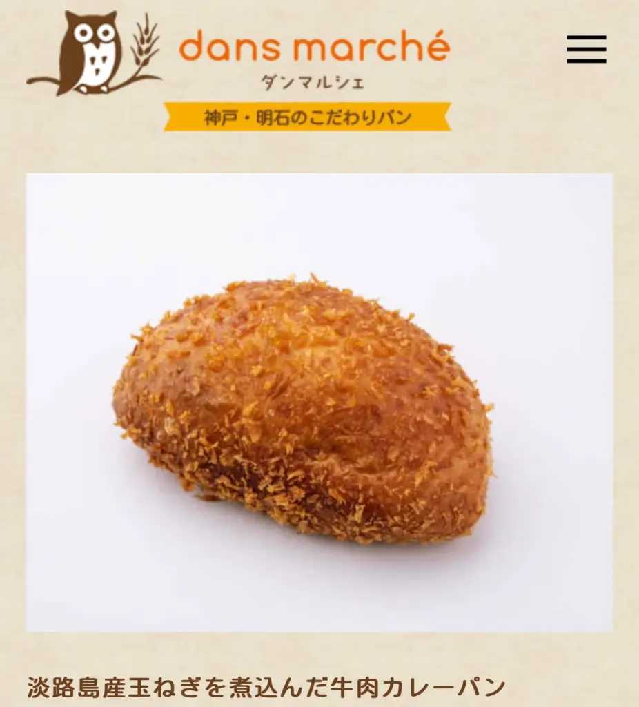 淡路の玉ねぎと牛肉をじっくり煮込んだ自家製カレーを使用した自慢のカレーパン。
