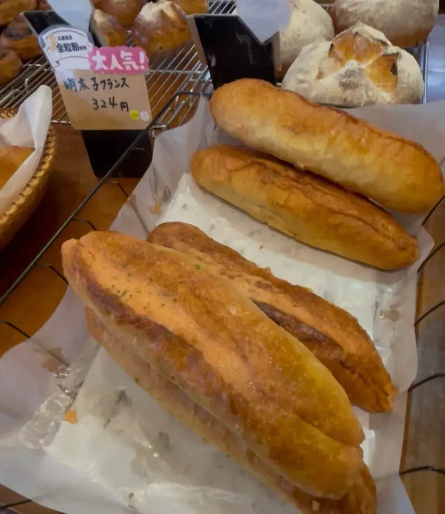 九州やまやの明太子と兵庫県のマヨネーズを使用し、北海道よつ葉バターを中身に染み渡るようにタップリ塗ったフランスパン。オープンからのロングセラーです。