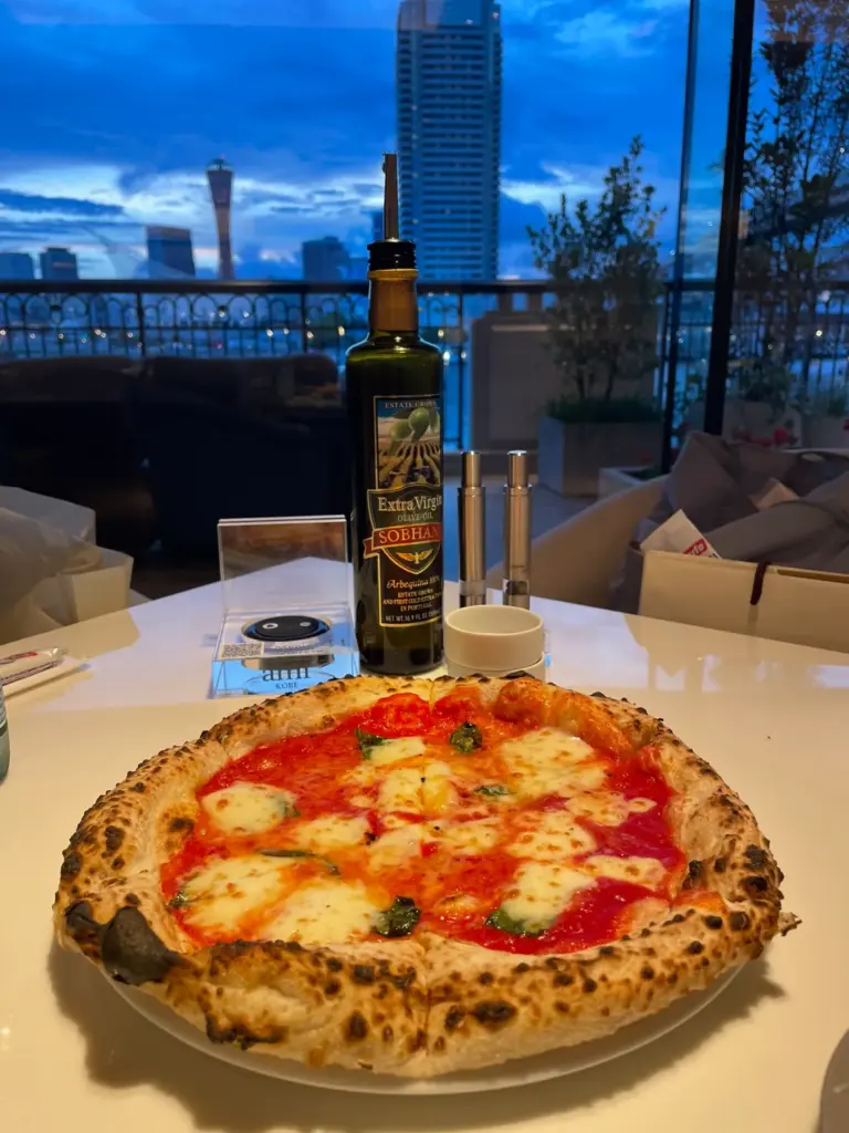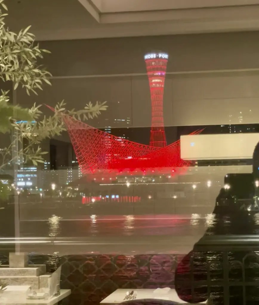 ポートタワー、モザイクガーデン、観覧車、など色とりどりのライトアップは、ショーを観ているほどの感動!こんな場所で食事ができるなんて、人生得した気分です。そしてベーカリー高野シェフの生地でできたマルゲリータは最高でした。