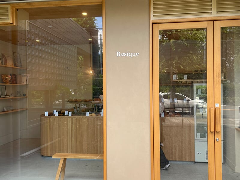 Basiqueの入り口は、大きくガラスになっているので、店内から公園が見えるのがいいですね。働いている人も、グリーンが常に見えると優しい気持ちになれるかもしれません。