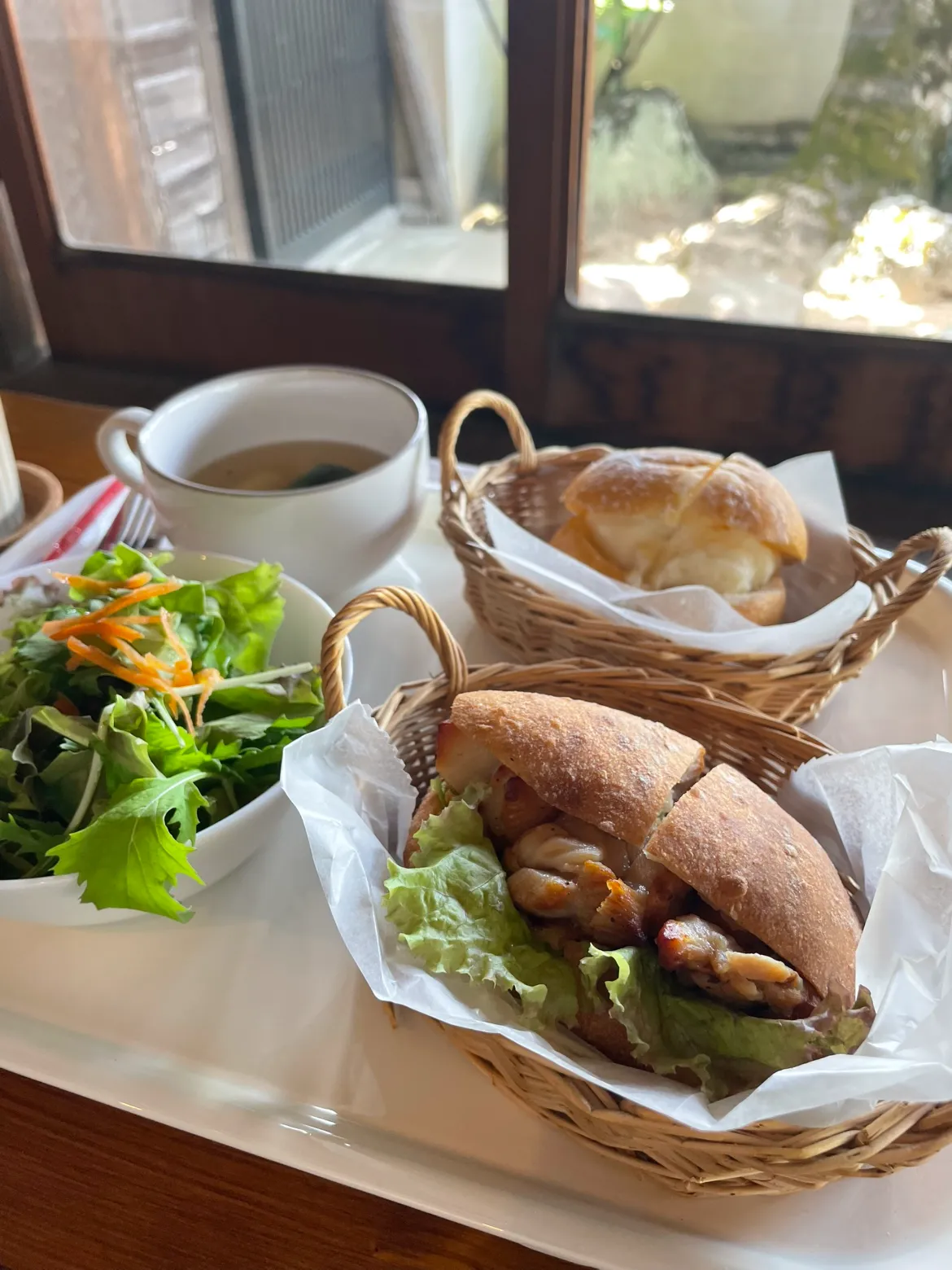 また、ブランチはショーケースで選んだパンに1,000円のブランチセット(スープ・サラダ・ドリンク)をプラスして、土間風の広々としたエントランスから、靴を脱いで上がる畳敷きの和室へ入ります。緻密な欄間や骨董品が配された空間で、静かな非日常の時間が楽しめます 。