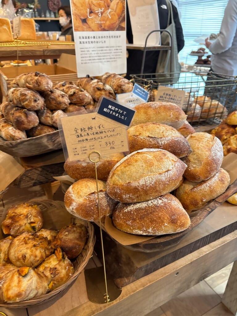 一番人気は「全粒粉しずく」というパンだそうで、入ってすぐの一番目立つところに陳列されていました。こちらのパンを使用したサンドもいくつかありました。
