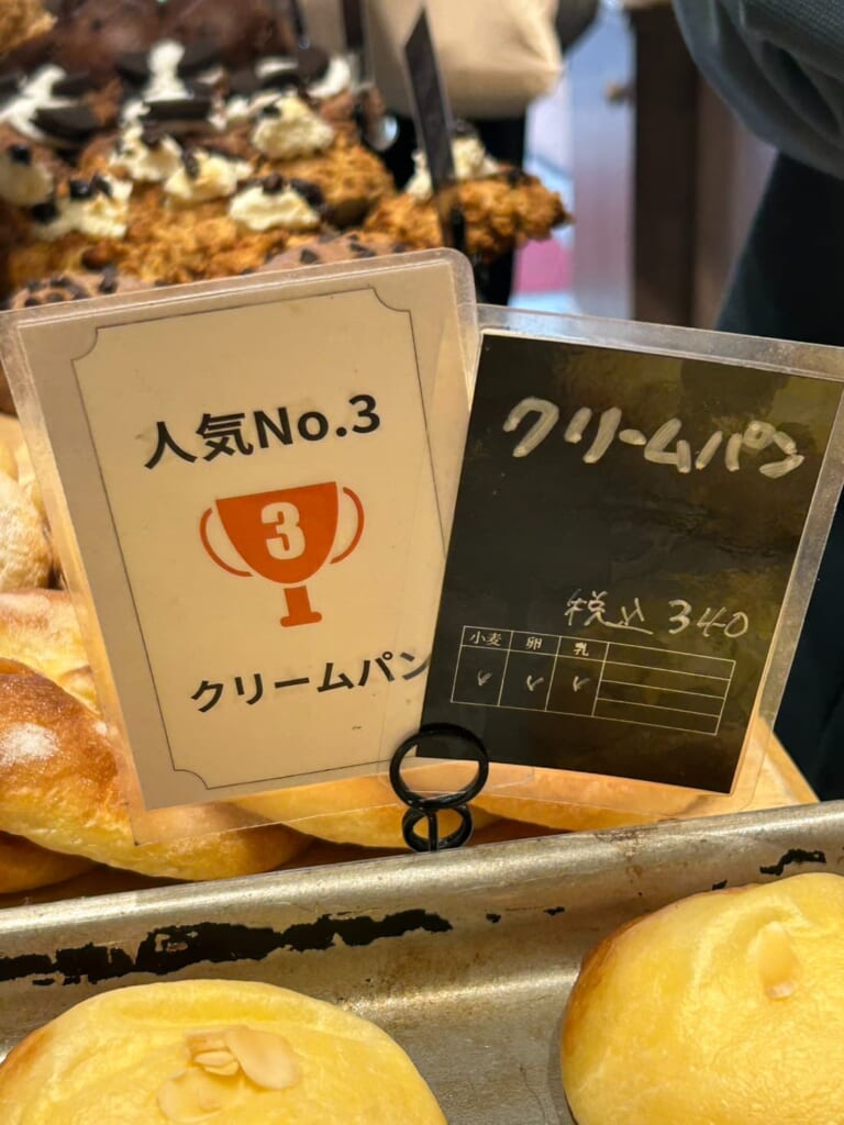 陳列に関しては、高さを出した見せ方などをされていて、おしゃれで見やすかったです。 パンの特徴としては、菓子パンや惣菜パンよりもシンプルなパンが多く、一つ一つが大きめなのが印象的でした。