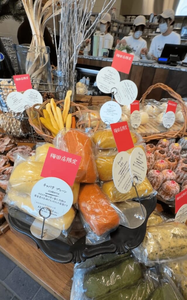 梅田店限定は、「ブリオッシュカヌレドーナツ」やチャバタ、グリッシーニのアレンジもいっぱいあります。