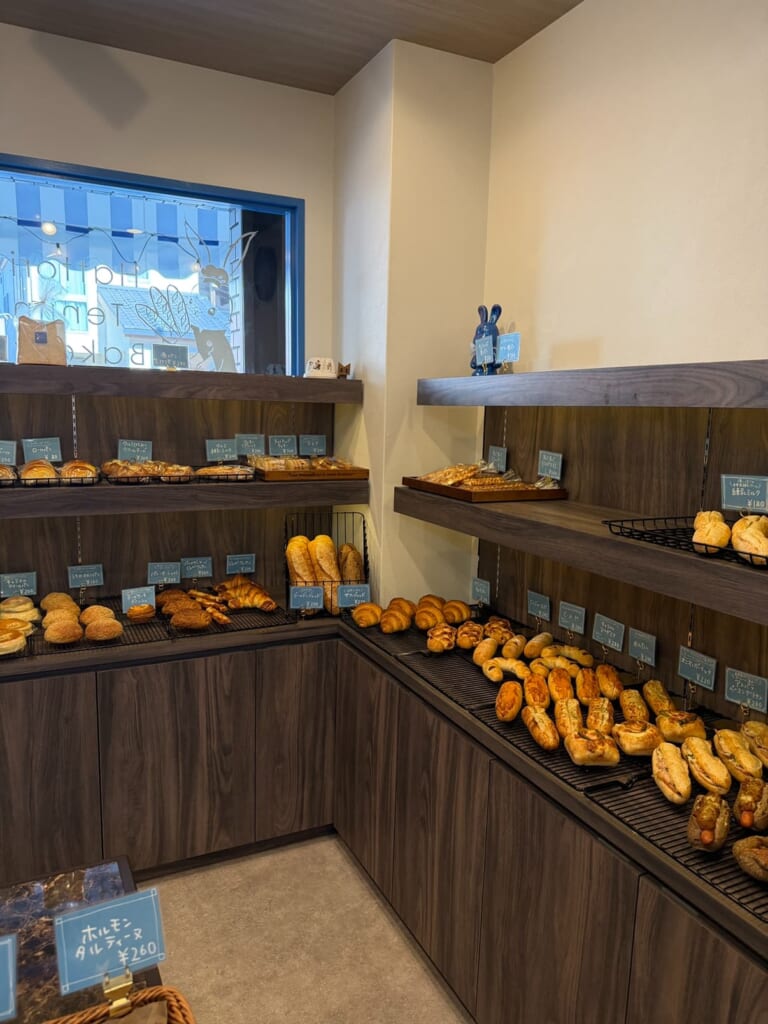 店構えは派手すぎず、それでいて清潔感があり、初めてでも入りやすい“町のベーカリー”の王道スタイル。地域密着型で長く続くお店を目指していることが、外観からも伝わってきます。